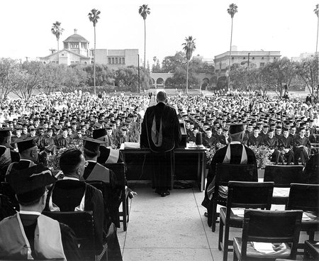 The Caltech Archives has compiled a gallery of photographs from the commencement exercises of 1965, performed during the tenure of President Lee A. DuBridge and featuring commencement speaker Frank Stanton, then president of CBS.