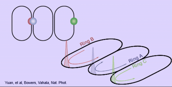 The paper describing the research, "Soliton pulse pairs at multiple colours in normal dispersion microresonators," appears in the November issue of Nature Photonics. In addition to Vahala, Yuan, and Gao, other co-authors are applied physics graduate student Yan Yu; Heming Wang (MS/PhD '21), formerly of Caltech and now at Stanford University; Warren Jin of UC Santa Barbara and Anello Photonics; Qing-Xin Ji (MS '22); Avi Feshali and Mario Paniccia of Anello Photonics.