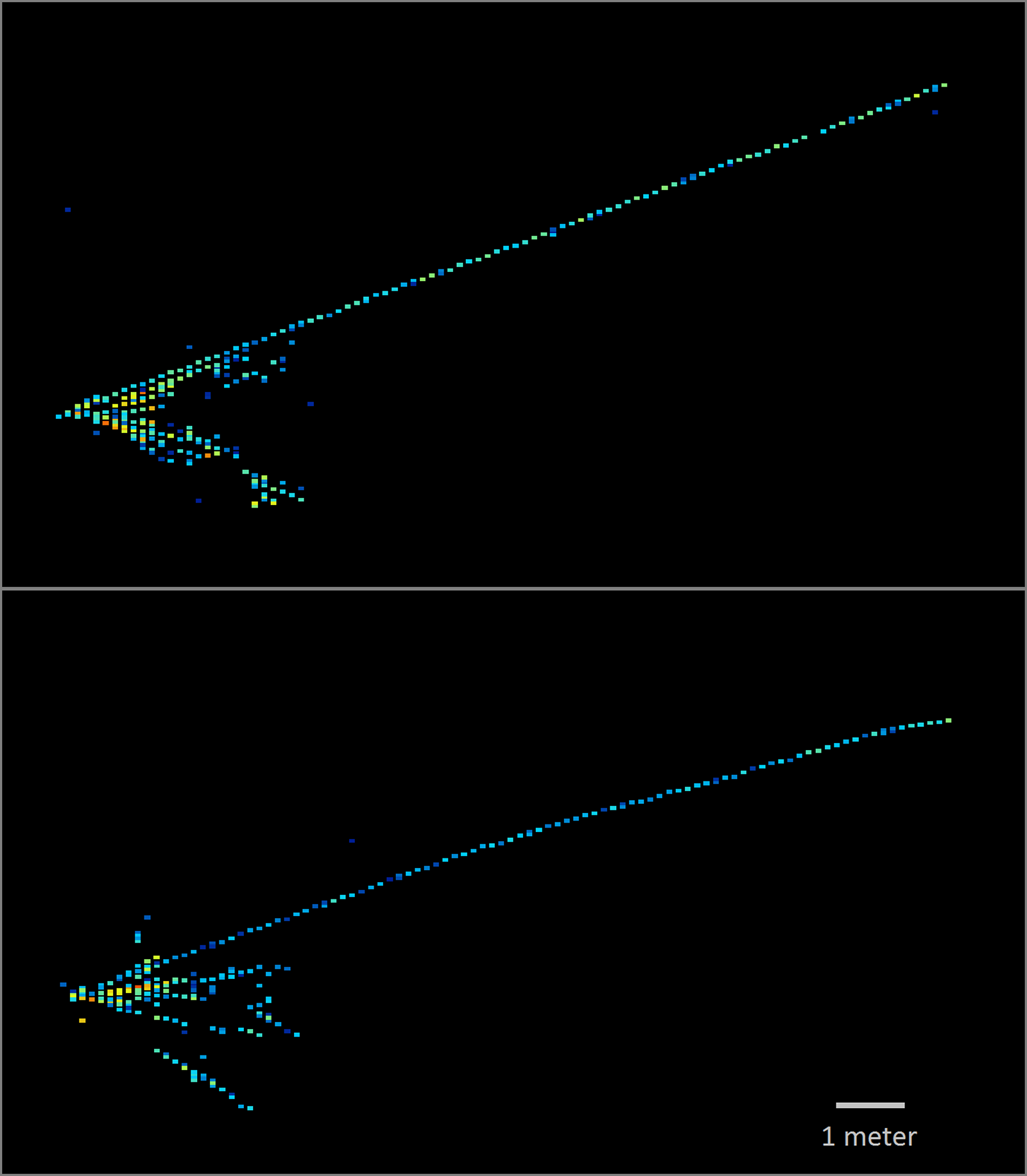 But while neutrinos have mass, they are extremely lightweight and often referred to as ghostly for their ability to travel unhindered through substances like the ground beneath us. They come in three flavors: the electron neutrino, muon neutrino, and tau neutrino. As neutrinos travel through space or in the ground, they can switch flavors. If you think of the flavors as being like strawberry, chocolate, and vanilla, this would be like finding your strawberry ice cream cone turned to chocolate on your way home.