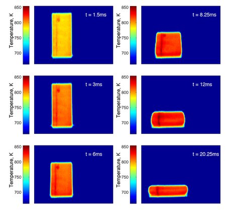 Previously, metallic-glass parts were produced by heating the metal alloy above the melting point of the crystalline phase—typically over 1,000 degrees C. Then, the molten metal is cast into a steel mold, where it cools before crystallizing. But problems arise because the steel molds are usually designed to withstand temperatures of only around 600 degrees C. As a result, the molds have to be frequently replaced, making the process rather expensive. Furthermore, at 1,000 degrees C, the liquid is so fluid that it tends to splash and break up, creating parts with flow defects.
