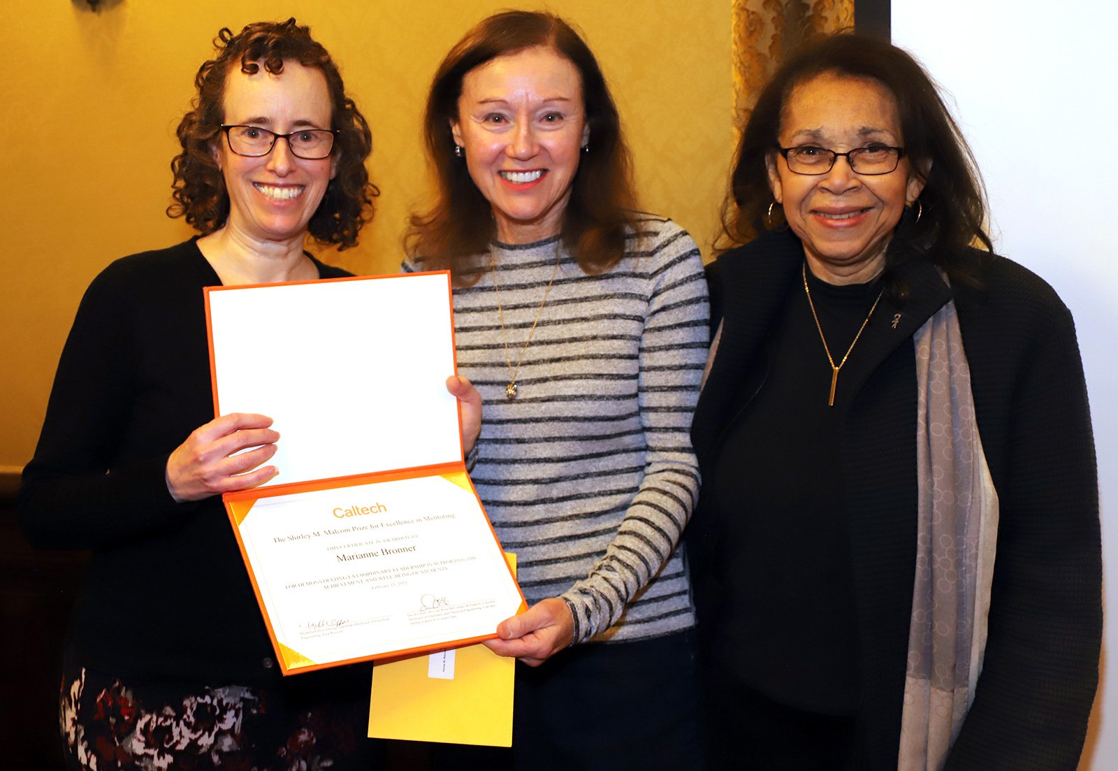 Marianne Bronner (center) with Shirley Malcom (right) and Michelle Effros (left). Bronner has received the 2023 Shirley M. Malcom Prize for Excellence in Mentoring.