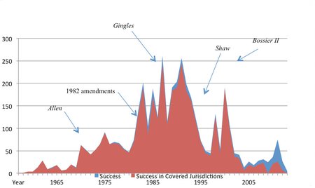 He had a sense that there had been a lot of cases outside of the covered jurisdictions. But if you look at all of the data, you see that the coverage scheme captures 94 percent of all of the cases and other events that took place from 1957 through 2013 and an even larger proportion up to 2006. Suppose that you were a stockbroker, and you could make a decision that was right 94 percent of the time. Your clients would be very, very wealthy. No one would be dissatisfied with you. That's what the congressional coverage scheme did.