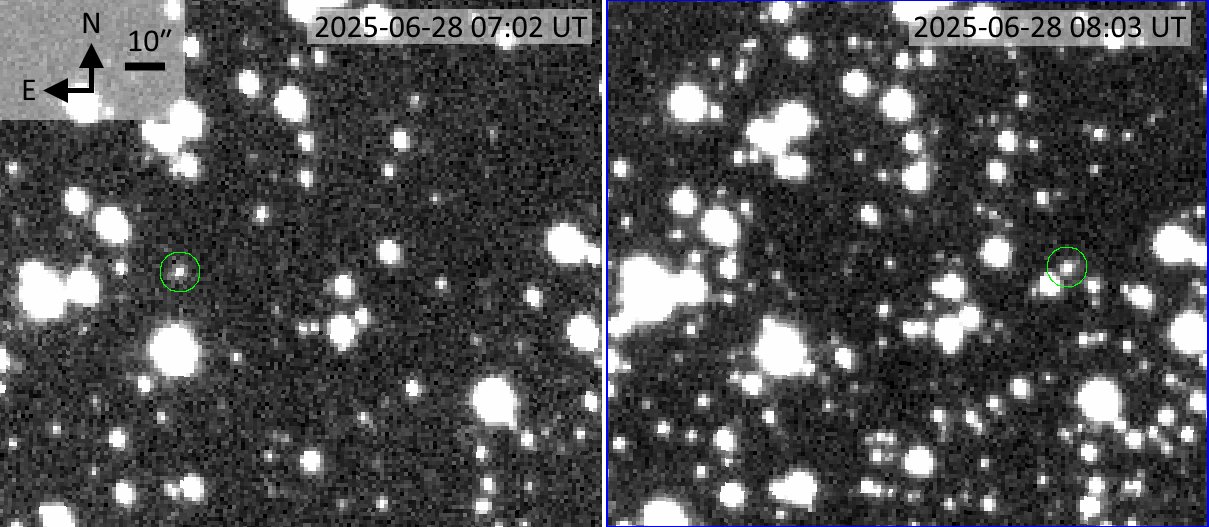 In the early morning on July 1, the ATLAS team detected a seemingly slow-moving object in the constellation of Sagittarius and reported its new discovery to the International Astronomical Union Minor Planet Center, a hub for tracking small bodies. A few hours later, Quanzhi Ye of the University of Maryland and a member of the NASA-funded team looking for near-Earth objects in ZTF data, was busy going about his usual job. He has a computer program that checks for new candidate small-body discoveries and then scans ZTF data to see if the camera imaged the objects. Ye then submitted the ZTF data to the Minor Planet Center.